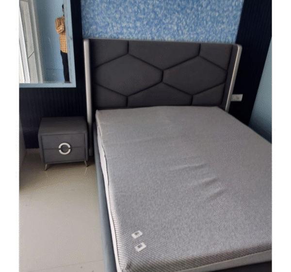• Geometric Headboard: Hexagonal stitched design for a stylish and unique appeal.