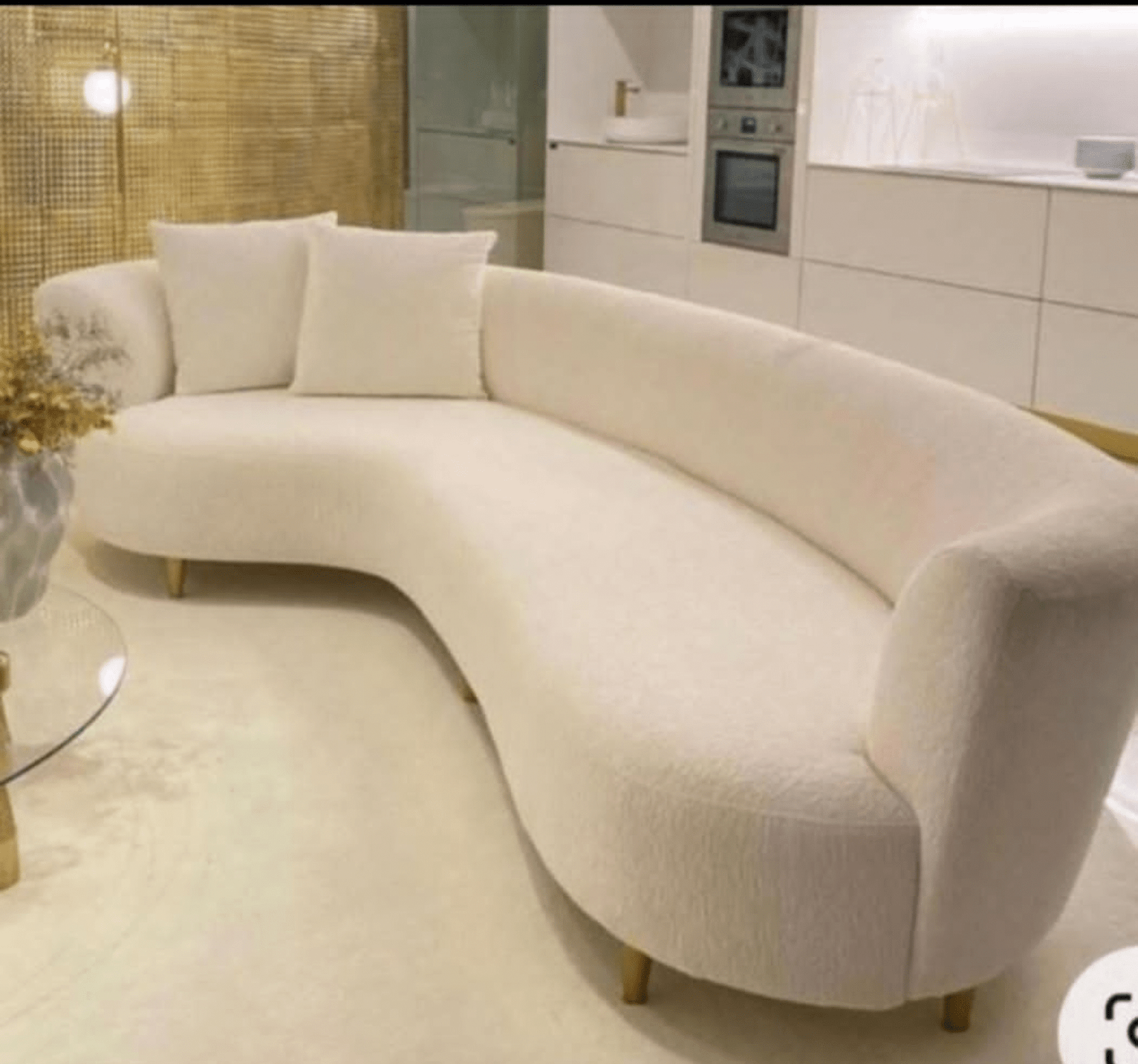 Redefine elegance with this Ivory Curved Modern Sofa designed to bring a touch of artistic flair and sophistication to your living space. Crafted with premium fabric upholstery and high-density cushioning, it offers supreme comfort while making a bold style statement. The unique curved design makes it a perfect centerpiece for luxury living rooms, lounges, and hotel lobbies.