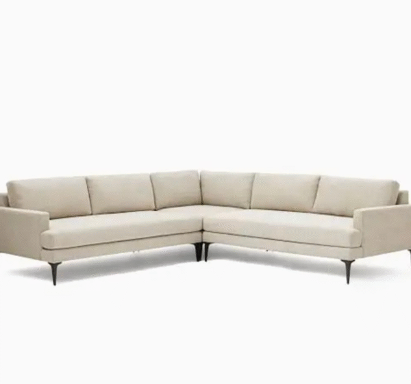 Upgrade your interiors with this Minimalist Beige L-Shaped Sofa Set, crafted for a clean and modern look. Upholstered in premium beige fabric, it offers a neutral tone that blends easily with any décor. The slim black metal legs provide stability while keeping the design light and airy. With plush detachable cushions, this sofa ensures maximum comfort and practicality, making it perfect for everyday lounging.