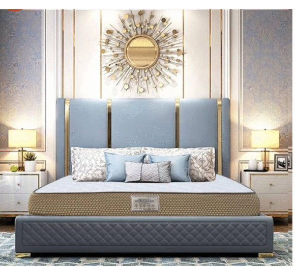 Tall Headboard Design: Statement-making high backrest with plush cushioning.