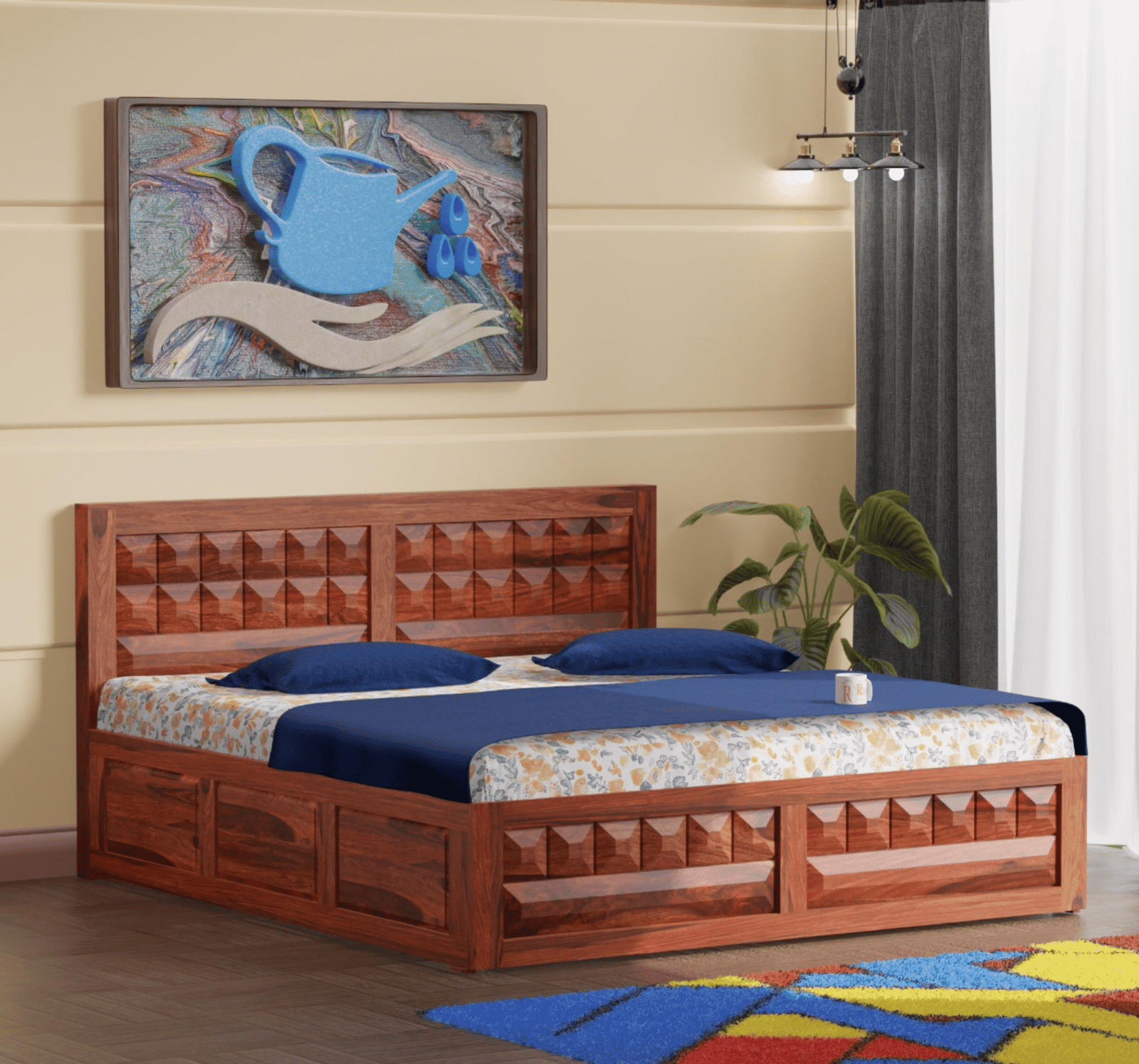 levate your bedroom with the Sheesham Diamond Storage Bed, a blend of craftsmanship and smart storage. Its diamond-pattern headboard and panels add a premium touch, while the ample under-bed storage ensures practicality.